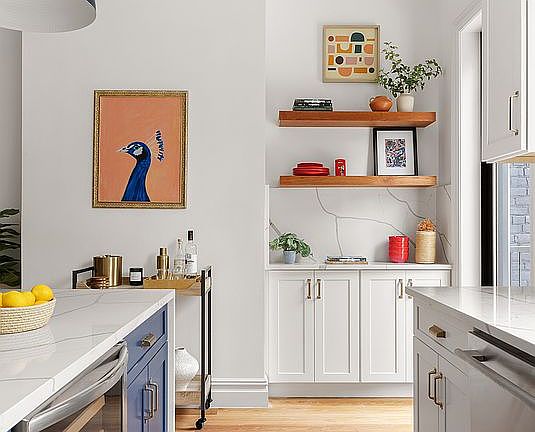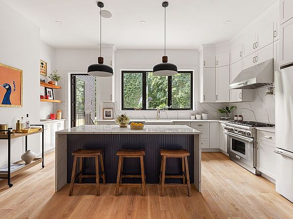 As you enter the owner’s three-bedroom duplex, you are greeted by an open layout with oversized windows looking out to the serene backyard. Stepping into the 20 feet wide parlor, you realize the breadth of space and tall ceilings that let the light radiate throughout the open floor plan. To the left, a formal living room area offers a great space for entertaining. To the right, a thoughtfully designed powder room. In the back, your dining and open kitchen features a four-seat island, custom cabinetry, and quartz countertops. With a farmhouse sink and a full complement of Thermador appliances including an integrated 36" French door refrigerator, dishwasher, six-burner stove and wine cooler this kitchen is this home's centerpiece.