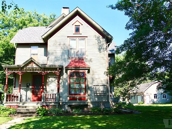Classic Charm with plenty of indoor and outdoor space! This Grinnell home is situated on almost a half acre. Step in from the welcoming front porch into the warm foyer. The living room boasts large original pocket doors and a fireplace with a tile hearth and ornate oak mantle. The large dining room has plenty of natural light from the huge windows overlooking a majority of the yard. The main floor bedroom allows access to the half bath. The updated eat in kitchen has beautiful counters, hickory cabinets, and gorgeous backsplash above the stove. Upstairs you will find 3 bedrooms and a full bathroom. There is a bonus unfinished attic space with access through the smallest bedroom. If you want even more finished space you could finish the huge walk up attic! There is not one but 2 garages! One being a 1 car and the other a 4 car, complete with insulation, electrical, and a floor drain. Don't miss your chance to see this beautiful home!