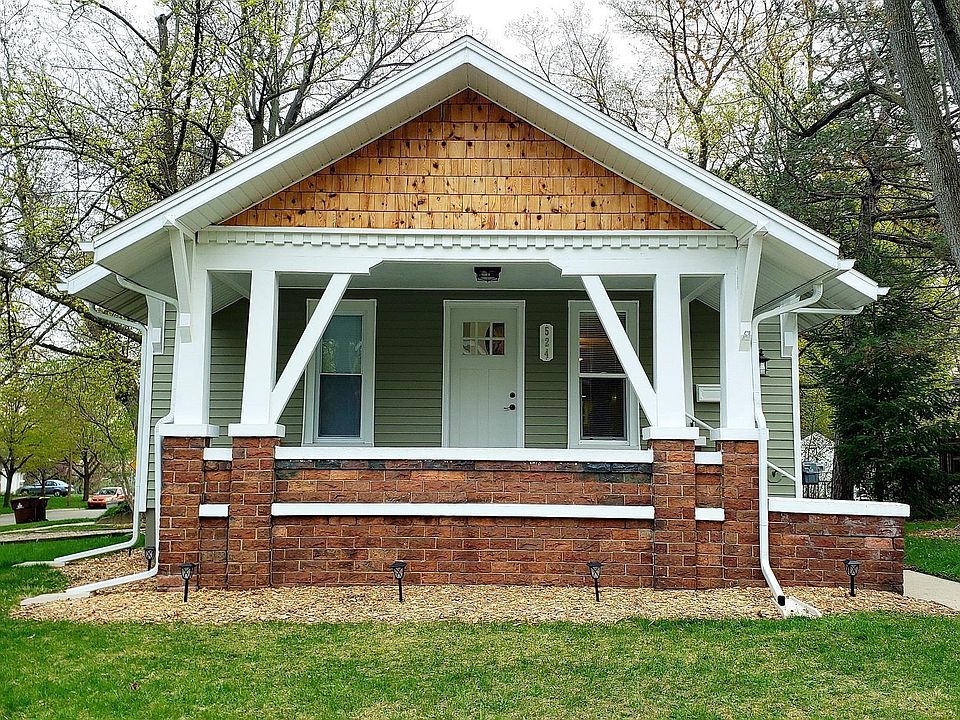 You will love this charming Sears Craftsman home on a corner lot! Original hardwood floors in the living room and dining area, with an open concept into the kitchen. The rustic brick gas fireplace provides a stunning focal point upon entry from the cozy covered front porch. The main floor laundry is conveniently located just inside the back door and just off from the kitchen. This home has two bedrooms on the main level, but offers two additional rooms in the basement that could be used as bedrooms or a quiet office space. The primary bedroom is spacious and has a raised upper level/bed platform with a vaulted ceiling and walk-in closet. Recently updated main level full bath and a brand-new half bath in the basement. All windows in the home are new; as are the front and rear entry doors. You will be amazed by the incredible space in the recently finished basement which also includes a family room. This turnkey home offers so much character, space, and is walking distance to schools and also downtown! The new deck in back is waiting for your grill and favorite chairs so don’t be late!