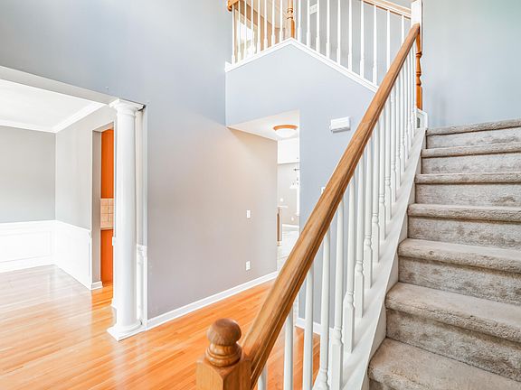This impressive home showcases gleaming hardwood floors and an open floor plan. As you enter, a two-story foyer greets you, leading to a formal dining room adorned with stunning wainscoting. The family room flows into the eat-in kitchen, featuring solid surface countertops, stainless steel appliances, and a spacious pantry. A versatile bonus room with two closets offers potential as a fourth bedroom. The master bedroom boasts tray ceilings and an oversized bathroom with a double vanity and soaker tub. Outside, a large fenced yard provides privacy. Conveniently located minutes from the town center, Highway 401, and amenities such as a pool and tennis courts.