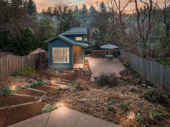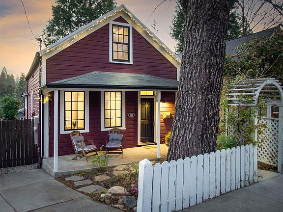Amazing Nevada City home with a tiny home right in town up the hill from downtown shops, restaurants and farmers markets. Buckeye Creek runs along the bottom of the property as a series of mini waterfalls attracting local birds and wildlife. Inviting primary bedroom addition on the main floor with a full bath, fire place and balcony overlooking the morning sunrise. The upstairs front bedroom has it's own private bathroom, down the hall is two more bedrooms and guest bath. New Bosch dishwasher in the kitchen, gas stove and stainless steal countertops give the kitchen a sleek updated look while holding the onto the homes historic charm. Just off the second family room area is a quant enclosed porch perfect for all your indoor plants. The backyard is recently landscaped and well lit with hardwired patio lights perfect for entertaining. The tiny home and partial basement are internet-ready with T-3 wire and the home has a Generac generator to keep the power going during outages.