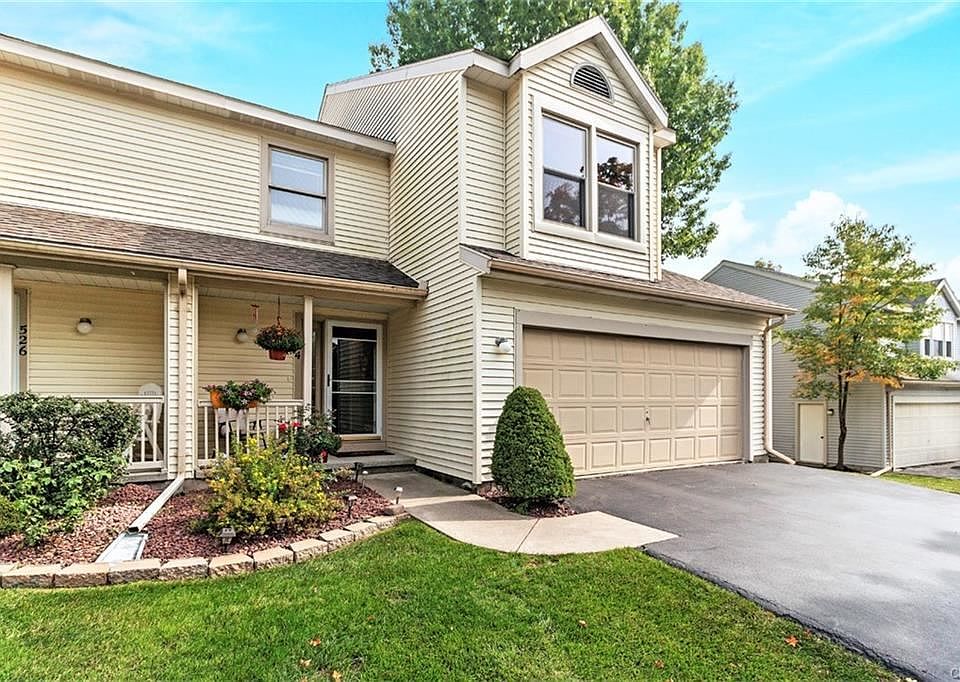 This stunning 2 bedroom end unit townhouse has so much to offer. An open floorplan with vaulted ceilings and many updates including flooring, windows, baths, the deck and more. Great 2nd floor Laundry with a second washer and dryer in the basement that comes with the home. A beautifully remodeled bathroom upstairs has a wonderful Jacuzzi tub for relaxing and with a 2 stall garage and very nice yard, it many just be perfection.