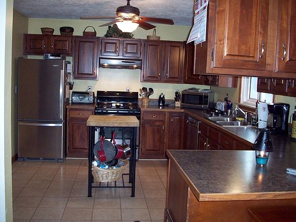 Updated & very private 2/3 BR Ranch. Lg entrance deck in back leads into a 10x9 mudroom. Open floor plan & cathedral ceiling. New stove & dishwasher. High Eff Furnace '07, garage with loft has 9x10 workshop & wood burning stove w/ deck behind garage. Lg covered patio/ can be car port. Very CLEAN home! 100% Financing Available!