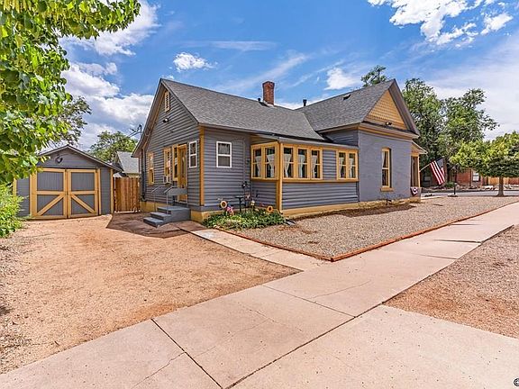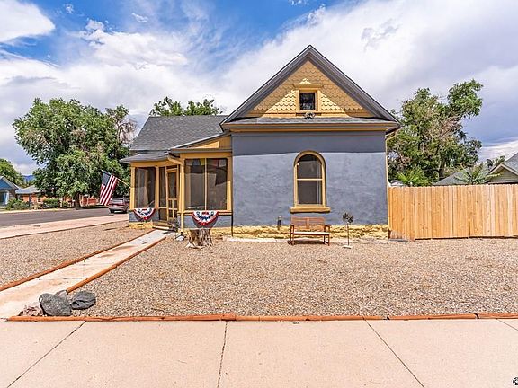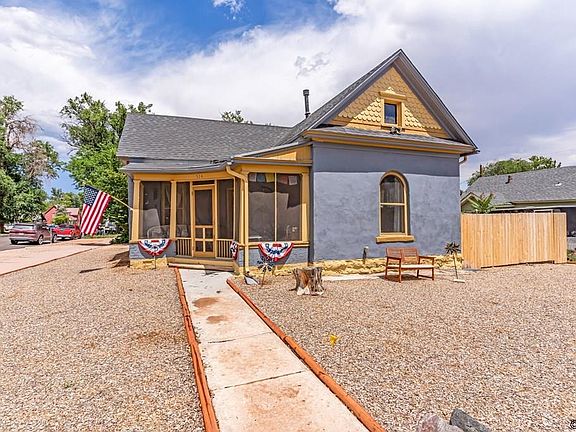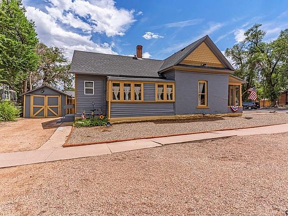 With main street nearby and tastefully restored, this 1.5 story brick Victorian home in Canon City is the place to be! Substantial remodeling was done in 2023, making this historic home perfect for Victorian enthusiasts, while still being able to enjoy modern upgrades. No need for repairs! This home is going nowhere! Built with the good thick lumber from back in time and foundation professional engineered ($18K steel I-beams)! Major utility replacements include the exterior stucco, sewer line, furnace, hot water heater, reinforced substructure, electrical wiring/panel, combo of new windows and original windows easy to open and close, hardwood floors look brand new, fresh paint, fully fenced back yard(bring your pets) and a new garage door currently being installed. The screened-in front porch is perfect for summer evenings, morning coffee and visiting/watching people stroll down the street. This home has the heavy wood doors/trim that we all love, untouched built in's and original brass hardware, 9 ft tall ceilings and light fixtures that make a statement. The kitchen has newer appliances, a coffee bar with surrounding original windows, center island and an adjoining dining room that makes a statement. Main level laundry (washer/dryer) included with a utility sink. Upstairs could be finished to your liking to add an office, additional bedroom or craft room. There really is no place like it!