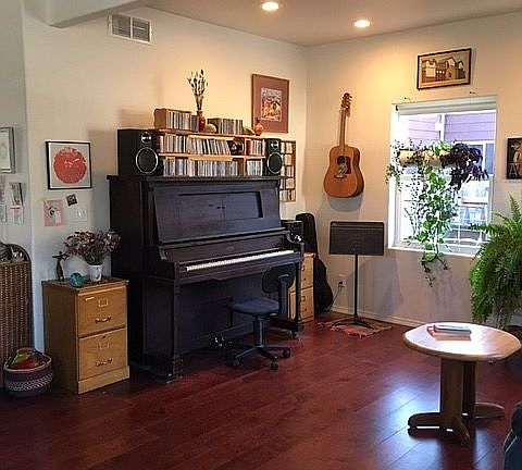 Two dwellings in one. 1140 sq ft living space 3 bedrooms 2 baths total. Built 2016 840 sq ft house 2 bed 1 bath plus separate 300 sq ft studio apartment Single car garage with workbench. Cedar siding and fencing. Mitsubishi mini split heat and cooling system in each dwelling. Main house has cherry stained oak floors, heated tiled bathroom floor. Wheel chair accessible rooms and shower. Hand held shower. Grab bars. Heated toilet seat with bidet. Tile entryways. Walk in closet. Lots of storage space. Completely fenced and landscaped yard. Waves of beautiful flowering trees, bulbs, perennials, shrubs and trellised vines spring through fall. Hummingbird and butterfly heaven..Fruit trees apple, cherry, pear, seedless grapes, blueberries, strawberries, raspberries, blackberries, rhubarb. Raised beds. Drip irrigation watering system. Gardening tool shed. New sidewalk . Cute redwood back deck. Where you can enjoy the fragrant roses and oriental lilies. Covered front porch. Appliances. Washer, dryer, freezer, fridge with ice and purified water dispenser. flat top stove, microwave, dishwasher, outdoor barbecue Corner lot in nice friendly and centrally located neighborhood. You can bike or walk to anywhere in town.