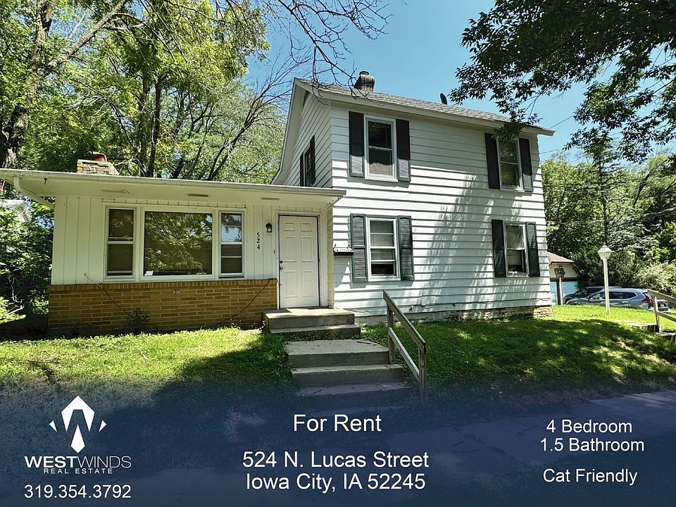 4 bedroom, 1.5 bathroom single family home located in Iowa City. Kitchen features lots of storage and a dishwasher. Second floor has 4 bedrooms, and a full bath. Unfinished basement has washer and dryer and plenty of storage space. Patio off of back of the house opens up into a large backyard. Off street parking included in rent.