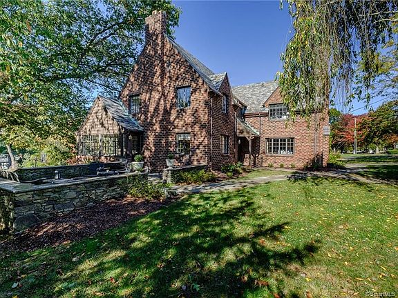 A show stopping Cotswold Tudor on coveted N Main St in downtown Wallingford. Masterfully designed in 1925, this distinguished estate is perched within walking distance to restaurants, shops, train station and Choate Rosemary Hall. Walk into an open foyer with grand staircase fluidly connecting the first floor. A formal dining room that accommodates everything from a casual dinner to elegant hosting, an eat in kitchen with granite counters and a living room with beautifully crafted built in book cases finishes off the first floor. Off the living room through French doors is a sizable solarium that overlooks the backyard and impressive in-ground pool & cabana. Off the side of the home, an extraordinary stonewalled terrace is perfect for entertaining. Upstairs, you have a private master suite with an expansive walk-in closet, updated bathroom and sit area that gives views to the backyard. Additional bedrooms are generously sized and a finished third floor adds further room for an office space, play room and more. A finished lower level provides further living space with fireplace and kitchen area. Newer furnace and central air! The roof has multi-colored slate with copper gutters and a two car attached garage underneath the rear of the home. Truly a rare opportunity to live in such an exquisite home. *SHOWINGS START FRIDAY, APR 30th*