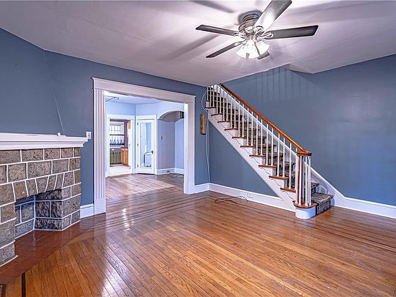 Make this one yours! This move in ready stone row home is situated on a beautiful tree lined street in The West End Theatre District. On the first floor you will find hardwood floors, an ornamental fireplace in the living room, spacious dining room and updated kitchen. The kitchen features granite counters, tile floors, tile backsplash, island and plenty of storage. Upstairs three bedrooms and full bath with skylight. Great covered patio, fenced yard and detached one car garage. Existing plumbing in basement for 2nd bathroom. Gas heat and window units for AC included with the sale along with all appliances. Nicely maintained property, sellers will convey with clear CO from city of Allentown.