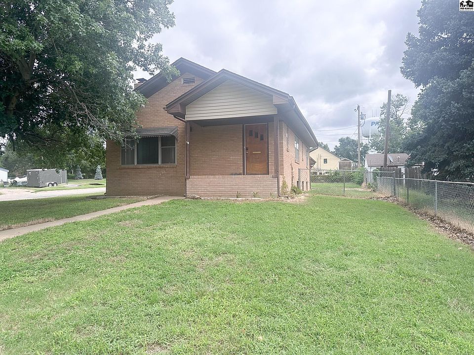 Welcome to this charming brick bungalow situated on a desirable corner lot! The main floor features two generously sized bedrooms with spacious closets and an updated Jack & Jill bathroom, complete with a tub/shower combo, modern flooring, and a stylish vanity. You'll love the inviting foyer with a coat closet, leading into a warm living/dining room combo filled with natural light and centered around a rustic wood-surrounded woodburning fireplace. The kitchen offers ample cabinet space, a built-in dishwasher, and a vintage stove/oven full of character. The finished basement provides flexible space with two bonus rooms—ideal for a family room, den, or office. The large laundry/furnace room includes a sink, shower, and abundant storage, A convenient storage room is located adjacent. Plus a separate bathroom with a toilet and sink. Outside, enjoy low-maintenance brick and metal siding, an attached two-car garage with breezeway that doubles as a covered patio, and a fully fenced backyard with alley access. Relax on the welcoming front porch or make use of the additional storage building. Recent updates include new carpet and laminate flooring throughout, fresh interior paint, and a new electric panel to be installed before closing. Don’t miss the opportunity to make this move-in ready gem your next home!