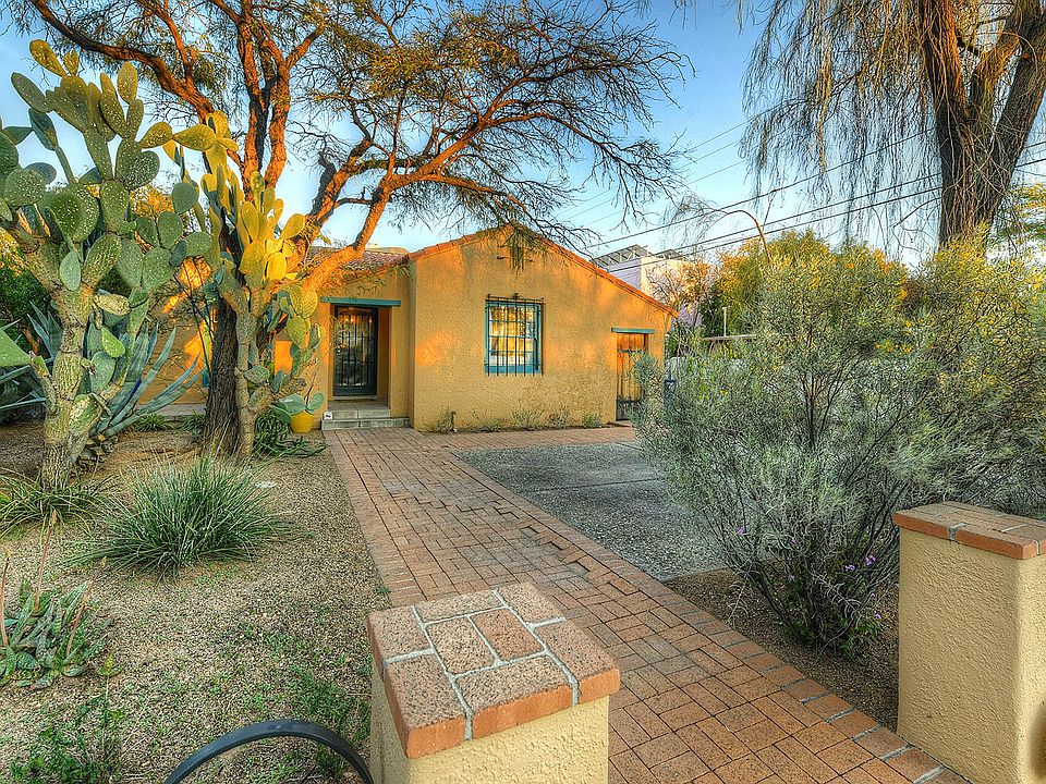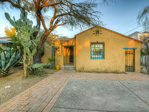 * VIEW VIDEO: https://az.movinghometour.com/22009003_Tucson%20MLS * Exquisite Adobe! Original home was built in 1927 w/extraordinary mud adobe great room/master bedroom w/en-suite bath addition. Kitchen has new & newer appliances, walk in pantry and cozy breakfast room. Charming & artistic elements are; 12' ceilings in Great rm, hand forged iron work, hand carved corbels & beams, Corner FP in Great room, niches & built in bookcases. Great room opens to a romantic backyard patio with pavers, Ramada, gardens that lead to a wonderful separate sleeping quarter w/ full bath and separate entrance. Split flr plan w/2 bedrooms/1 bathroom w/ Mexican tile and concrete flooring. Off street parking. Walking distance to UAZ, Rincon Market, Himmel Park & Perfectly located in the heart of Sam Hughes....Tax reduction for Historic Designation for owner occupancy!