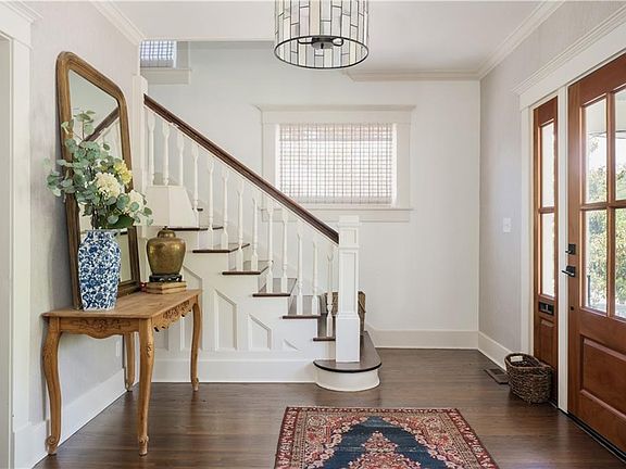 An absolute gem of a home in Historic Mesta Park. This over 3,000 sq ft home is truly one of a kind. With its oversized lot, attached two car garage, and separate garage with living quarters, this home is a rare find for historic living. Upon entering you are greeted with a beautifully wallpapered entry way and an inviting new front door. The entire home has refinished original hardwood flooring and moldings. The additional living room adds a huge amount of functionality and space. As well as the open concept kitchen and dining room makes this home perfect for entertaining. Upstairs has four bedrooms, two bathrooms, and a dedicated office. The Primary suite has vaulted ceilings, three closets, and a primary bathroom with beautiful marble. The attached two car garage doubles as additional entertaining space. The large lot leaves plenty of room to create the backyard of your dreams!