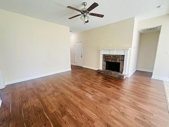 Charming ranch-style home situated on a spacious lot, featuring three bedrooms, two full bathrooms, and a flex room perfect for a home office, study, or playroom. The split floor plan showcases engineered hardwood floors throughout and a cozy fireplace in the great room, which flows seamlessly into the kitchen. Enjoy stunning granite countertops, stainless steel appliances, a stylish backsplash, and a generous walk-in pantry that doubles as the laundry room. The expansive owner's suite offers a walk-in closet and a private bath complete with a soaking tub and walk-in shower. Outside, the fully fenced backyard provides ample space for outdoor entertaining, play, or relaxation. Plus, enjoy the freedom of NO HOA in this welcoming community.