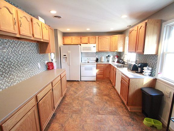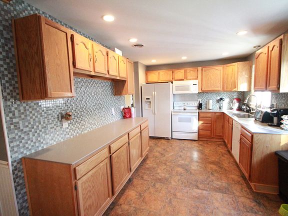 You will be pleasantly surprised! Totally updated! Kitchen, newer flooring, tile backsplash, Oak cabinets! Open to Dining room (which is the 3rd bedrm w/closet and can be easily converted back). Wainscoting, wood floors. Front living room, w/bay window & hardwood flrs. Full kitchen and 1/2 bath in basement with bar & living space. Abv grd pool, patio, breezeway & fenced in backyard!
