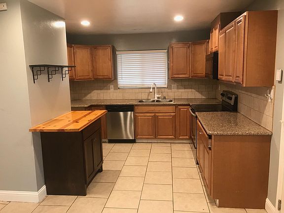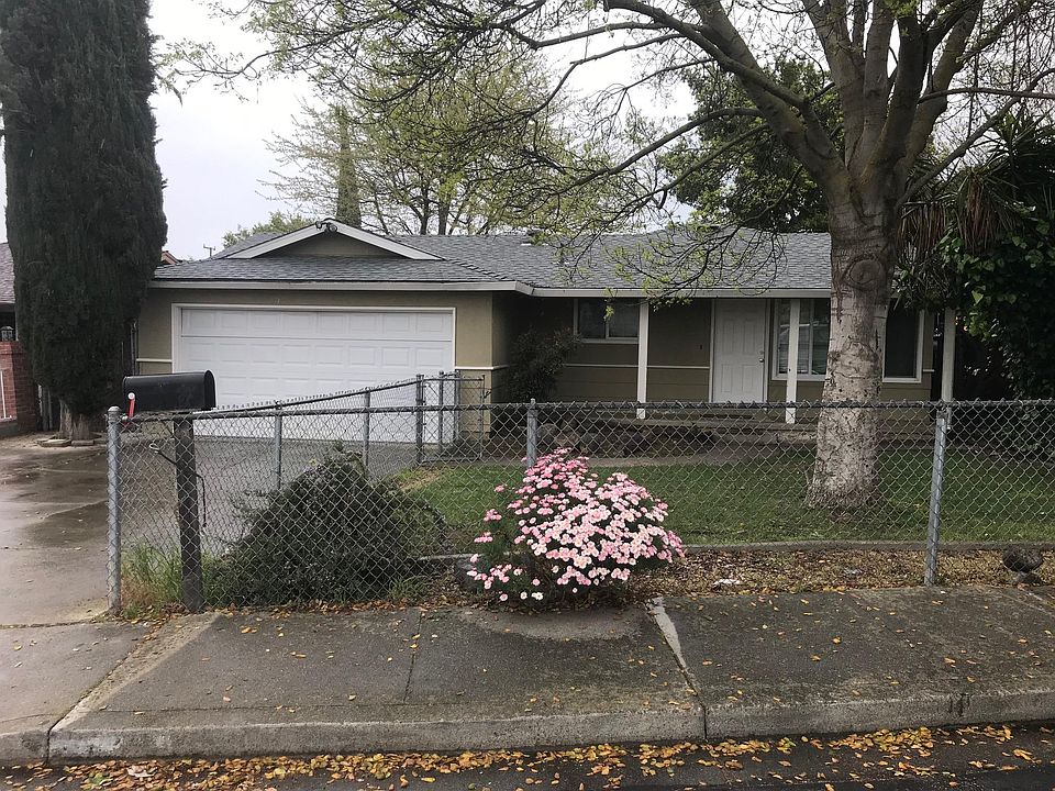 Single story with pergo flooring, new carpet in bedrooms, interior freshly painted, kitchen has granite countertops, stainless steel appliances, kitchen and bathrooms remodeled within last 6 years, 2 car garage. New landscaping in backyard, front & backyards on auto sprinkler timers. Gardener included. Close to schools and shopping downtown. 1 year lease