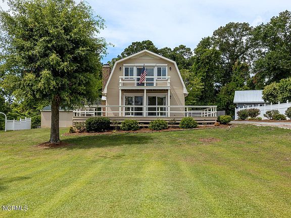 Country meets Coastal! This 3 bedroom 2 bath home sits on over half an acre just minutes from the back gate of Camp Lejeune and downtown Swansboro. Sit on the front porch and enjoy the sounds of nature and views of Queens Creek. This property has new flooring, recently updated kitchen with granite countertops and new appliances, new hvac upstairs, ventless gas logs, new window treatments, new windows throughout almost the whole house, and roll down hurricane shutters on front and back sides. The fenced in backyard boasts a 40'x16' barn, perfect for storage or workshop, as well as a 16'x11' shed. There is even a RV hookup! Come see this Queens Creek Coastal Charmer today!!!