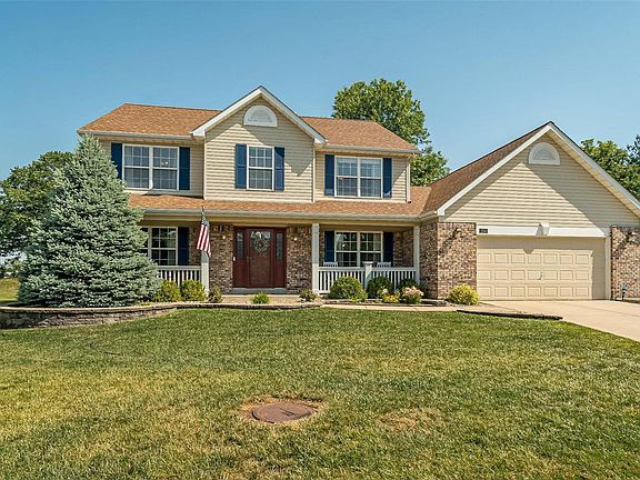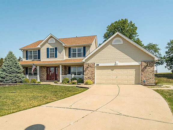 Spacious open floor plan (living/den open to family room & open to large breakfast area and white, bright kitchen-quartz countertops. Adjoining bay window doors to oversized patio. Very generous sized dining room and also oversized main floor laundry. 4 nice sized bedrooms up. Primary offers double vanity, corner windows (that open), walk in, separate shower. The landing area- great play area or work space. Recently part. finished lower level with added 1/2 bath! Work out area or home office, 2nd family/rec room and storage. Awesome oversized garage-extra long on right 1/2, abundance of shelving, fits full size car plus large pickup. 2nd frig stays. Super sized concrete patio-large family/parties with a walk from the driveway. Full 2-10 warranty has been renewed and included for 1 year to buyer. Note -owner damaged flooring in foyer when finishing basement ceiling-“as is”.