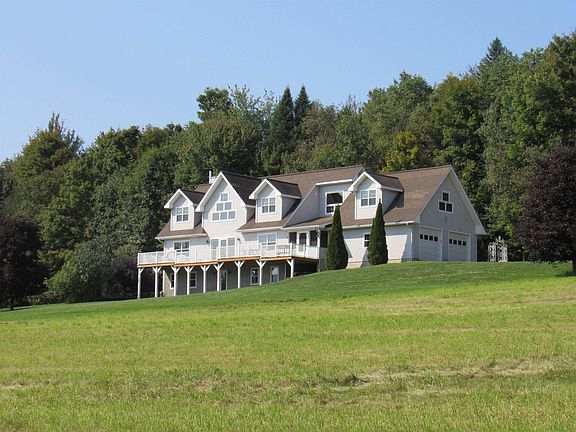 This 3 bedroom home with a 2-car attached garage sets privately on 35 acres. It offers Willoughby Gap views w/ Burke Mountain seen between. There are 3-4 acres of open meadow/field, a stable, 7 stalls, tack space, loft & a run-in tucked just inside the tree line. This pole barn with water and power could also be a workshop, extra garage or storage. There are trails thru the mixed wooded acres. Let's talk county home! Gorgeous hardwood floors & trim throughout. A spacious main level primary suite with views, walk-in closet and attached bath w/ jetted soaking tub & seated shower. The living room is bathed in natural light through the cathedral ceilings and takes in the glorious views. Formal dining room, country kitchen with farmhouse sink, custom hardwood cabinets, plate racks, some open shelving, butcher block counters and all new appliances. Bonus wonderful pantry with chalkboard doors and pull-out shelves. Finishing off the first floor is a 1/2 bath and laundry area off the garage with ceramic tile. Second floor offers, 2 bedrooms, full bath and a large den/sitting area. Quietly relax & entertain on the screened porch or step out onto the very new 56 ft deck taking in the views. Take a stroll thru 86 ft of patio & beautiful flower gardens. There is a full walk-out basement begging to become finished living space. Interior was freshly painted, septic pumped & inspected, boiler service and water tested. Property is Agent owned. Delayed showing on 10/23/23. Book to Look!