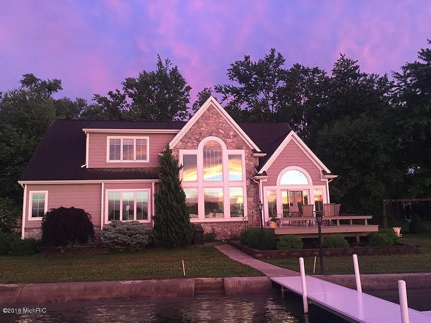 Coldwater Lake home built in 2002 featuring 4 bedrooms and 2.5 baths. Wonderful location on private Pearl Beach Drive. Great contemporary design offering tall ceilings, open living space and great views of the lake throughout. Home features main floor master, laundry and fireplace with welcoming foyer area. Over 2200 square feet of living space sitting on nearly a 1/4 acre with 165 feet of lake frontage.