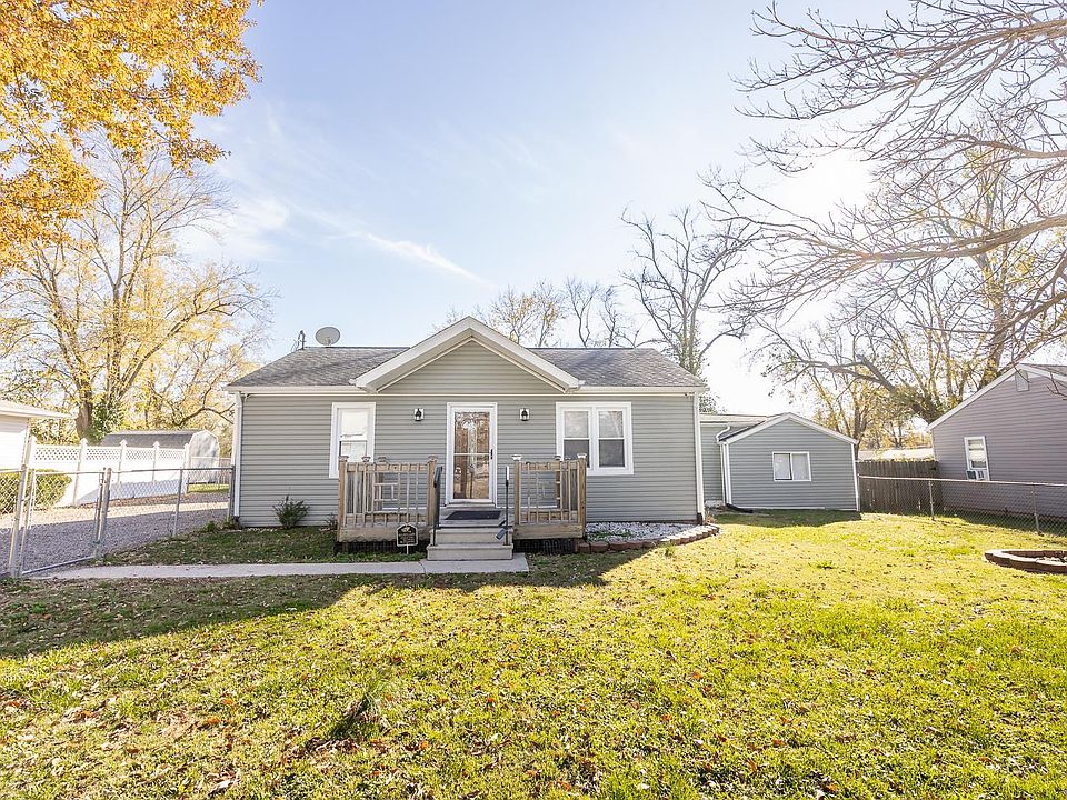 You will fall in love with this updated home with newer siding on 1/4 acre Fenced Yard! You will enjoy the Living Room in the front of the home, offering an open floor plan to the Kitchen with a pass-thru window. The Kitchen has plenty of cabinets, Granite Counters and the appliances stay-- including a gas stove, dishwasher and built-in microwave too! The Laundry Room has white storage cabinets and is also a mudroom coming from the backyard. The larger Primary Bedroom offers a fantastic closet with tons of storage space. You will have two additional bedrooms and an updated Full Bath. The entire house has updated paint and flooring that you will find very appealing. There is rear patio offering a nice gazebo for entertaining friends or simply relaxing. You also have plenty of storage in the 2-car garage with electric and an additional rear single car garage door. Plus, there is a storage shed too! Be sure to call your favorite realtor because this one is priced to sell.