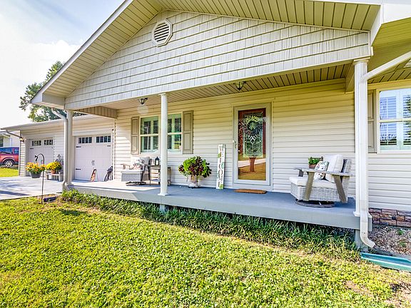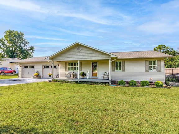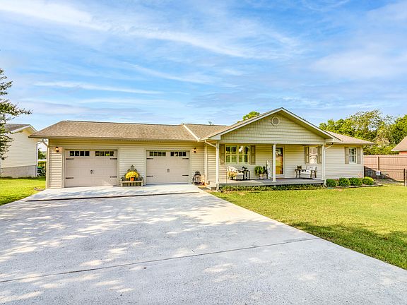island, custom cabinetry with pull out shelving. Kitchen is open to both large dining area and Enormous Great room. The great room is loaded with window offers wonderful lake vistas. The 3 bedrooms are sized to accept large furnishings and have good closet space. Master Retreat is on the rear of the home also with a view of the water. The open spaces of this fabulous home are perfect for large gatherings. You'll find beautiful hardwood flooring, granite kitchen counters, lots of closet storage, and more. Relax on the covered deck that offers privacy for watching the sunset. 2 car kitchen level entry garage offers a bit of extra storage space for shelving, yard tools, etc. One of the garage bays features garage door on front an rear for easy drive thru access. Off the rear deck you'll find a fenced area that is great for pets to play. The large rocking chair front porch offers space for friends and family to pull up a rocker and visit. The one plus acre lot is level and easy to maintain.