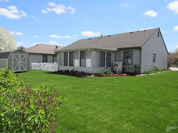 Move in ready 3 Bedroom,2 Full Bath,Ranch home on Large Corner Lot. Home features 5yr old Smuckers 30 year roof. Turn the key and you'll be greeted by wood laminate flooring in the entry way and beautiful Crown Molding. As you enter you'll be amazed at the spacious Greatroom w/Cathedral Ceiling! You'll also find a cozy Eat in Kitchen with wood laminate flooring. Off the Greatroom is a 3 seasons room with its own separate $6000 Furnace/AC unit that was installed last spring and is included in the overall sqft. 3 Seasons Room has large windows and pull away blinds that can provide privacy. The back yard has a new Vinyl Privacy Fence and also a new Vinyl Fenced In area for your furry friend. Out back there is a Newer 8X12 Shed. Large MBR also has Crown Molding and Cathedral Ceiling, Walk-In Closet, ceiling fan, and private bath. 6 Panel Doors throughout. 2 car garage has built in shelving, workbench, pull down attic access that is partially floored, and fridge.