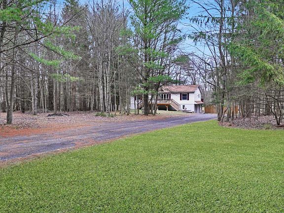 IMMACULATE RANCH IN HIGHLY DESIRABLE NEIGHBORHOOD WITH BUS STOP AT END OF DRIVEWAY! Located in the Delaware Valley School District, find this 3 bed, 2 bath raised ranch in the Pocono Mountain Woodland Lakes community. Situated on 1.02 acres, this home offers a tremendous amount of outdoor living. A big back deck is the perfect spot for star gazing & barbecues, plus an above ground pool offers you more privacy when not meeting friends/neighbors at the community pool! Open living dining room is perfect for entertaining! An updated kitchen offers a gorgeous GRANITE counter & TILE BACKSPLASH, w/ glowing laminate wood looking floors. Convenient 1st floor laundry. Master bedroom w/attached full bathroom. Two more bedrooms plus full bath. Huge unfinished basement! Work shop room! 3D tour