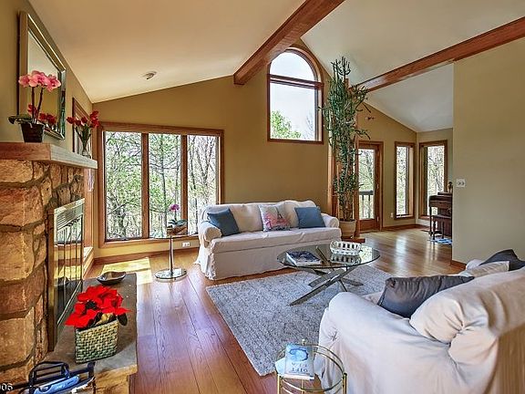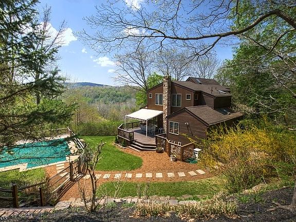 Tree Tops" is an aptly named custom home set up high with spectacular views of the Delaware River and mountains from every room. A serene private retreat with pool, gardens, decks and hiking trails. Open floor plan with updated kitchen open to dining room, living room and family room, with sliding doors to large deck and fenced pool area. 1st floor bedroom, full bath and laundry room. Master bedroom suite on 2nd floor with adjacent sunroom which takes advantage of the magnificent views. 2 additional bedrooms and bathroom on this floor. Finished lower level with recreation room and 2 car garage.This farm assessed property is wooded but has a large level play area. An ideal country retreat for full-time or weekend living with access to the beautiful Delaware River towns, biking, hiking, shopping, restaurants.