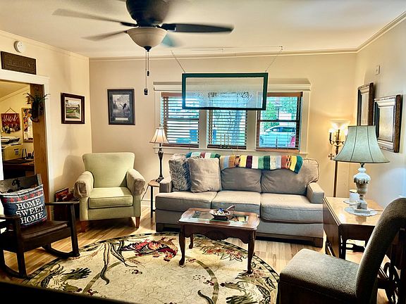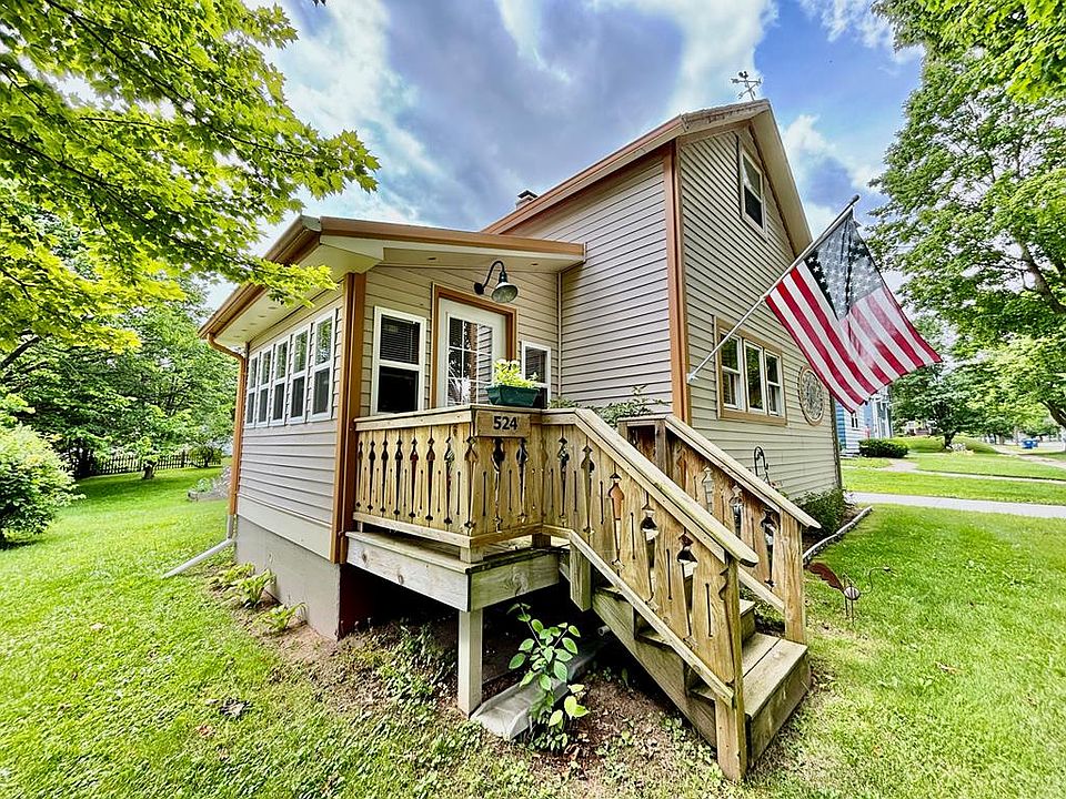 Est. 1901. This historic harbor town home is nestled along a mature tree lined street, just outside the Historic District posted in a very spacious yard(mostly fenced in). With its charming era accurate exterior paint colors, front deck & flag this home is picture perfect. Tiffany box blue kitchen cabinets make for an inviting place for homemade pancakes to be had. Kitchen is roomy enough to even add a butcher block island with bar top seating. Main floor bedroom faces east for all the morning sunrises to awaken too. Upper bedroom faces north to get that cool night summer breeze. Lots of little historic features through out home. Many modern updates as well. Plentiful storage and indoor/outdoor basement access with vapor bright.
