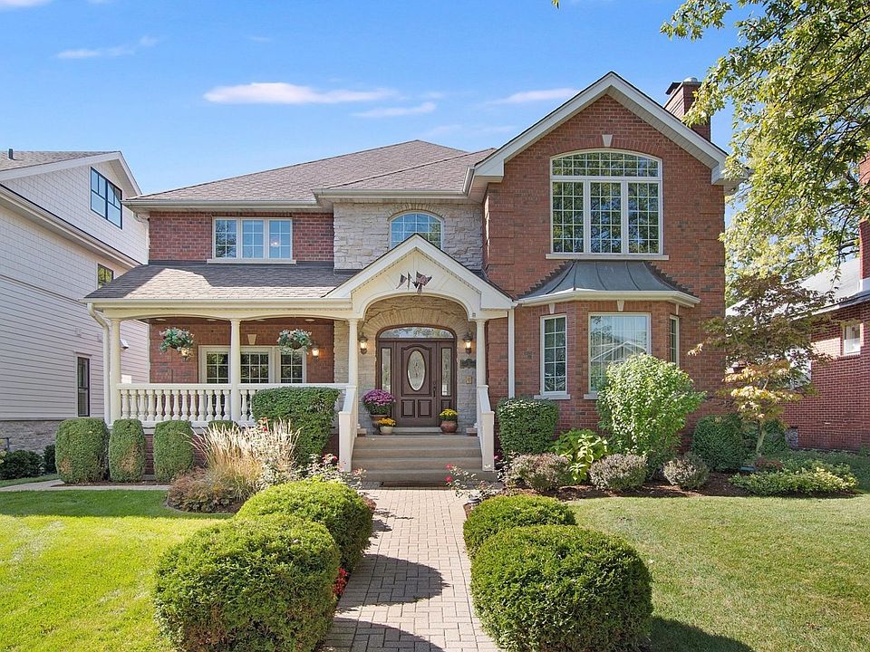 You can't replace this classic beauty, custom built by the current owner and located just blocks from Uptown Park Ridge. Thoughtfully designed and crafted with the finest materials, this all-brick home exudes timeless elegance and modern convenience. The grand foyer with its high ceilings welcomes you inside. The versatile office, with access to the front porch, can easily be transformed into a first-floor bedroom suite, complete with a conveniently located full bath nearby. Enjoy the warmth of two fireplaces-one in the cozy living room, which seamlessly connects to the dining room, and another in the inviting family room. The open kitchen is an entertainer's dream, overlooking the family room, and features a spacious eating area with direct access to the backyard deck. Upstairs, you'll find four spacious bedrooms, including a luxurious primary suite with its own fireplace, as well as the convenience of second-floor laundry. The expensive, full-finished basement adds tremendous value, offering two bedrooms, full bathroom, plenty of storage space, and a recreation room complete with a wet bar. This versatile space is ideal for hosting gatherings or providing a private retreat for guests with radiant heat under the porcelain tile. Outside, the backyard is perfect for spending your evenings, featuring a deck, a patio, and plenty of yard space for relaxation or entertainment. A mudroom off the side entrance provides functional access and leads you to the garage. The two-car brick detached garage, with an additional two-car parking pad off the paved alley, ensures ample parking. This one-of-a-kind property combines comfort, style, and practicality, all in an unbeatable location.