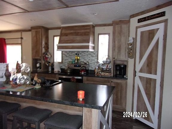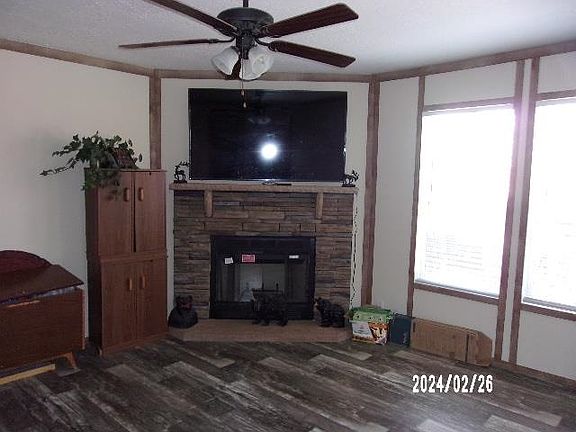 New in 2021 this Champion Commander situated on a .46 acre with wooded back yard. With all the extras offered for that model, extra electric outlets inside and out, super deep drawers in kitchen, center island with outlets, water hydrants both ends of home, wood fire place, gutters and gutter guards, extra tall crawl space, soaking tub, walk-in shower, double bathroom sinks, super large walk-in closets. Includes decks on front, 12x10 side 6x6 and back 12x30. back deck is partially covered with metal roof. Storage building does not stay!