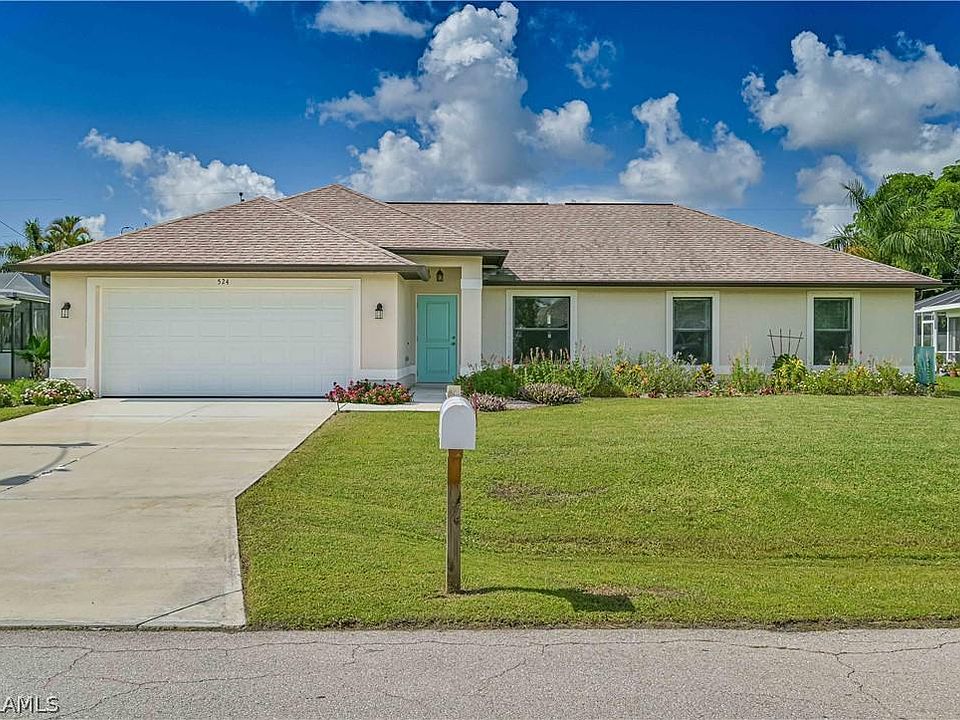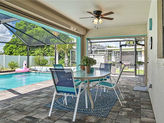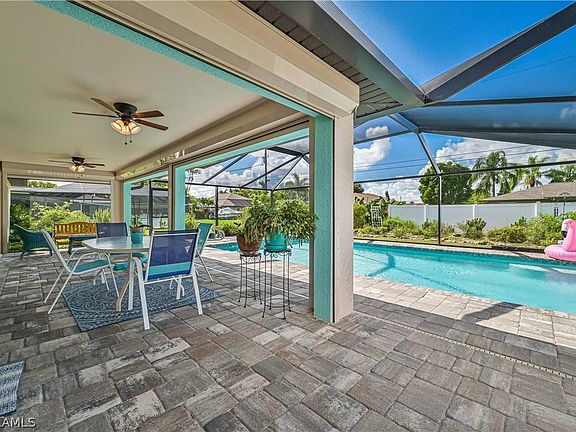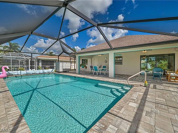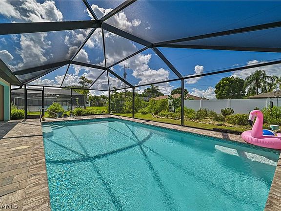 LOCATION LOCATION!! If you want to live in one of the most desirable areas of Cape Coral, you have found it! ALL ASSESSMENTS IN AND PAID!!! This beautiful 3 Bed + DEN(Can also double as a bedroom) SOUTHERN EXPOSURE POOL home will make an excellent primary residence or the perfect vacation home! This light & bright floor plan brings in a ton of natural light and features a spacious living room & kitchen area with stainless steel appliances, beautiful granite countertops, high cathedral ceilings, & new luxury vinyl and carpeted floors in the bedrooms. The sliding glass doors open up onto a large covered lanai and new paver pool deck and huge pristine salt water poolthat is 30ftX15ft with Pool Bath! Relax in your screened in lanai watching all the butterflies from the gardens that surround the home and enjoy fresh avocados and lemons from the trees out back. The home also features new epoxy garage floor, full rain gutters around entire home, electric pull down hurricane shutters around the lanai and manual ones for the rest of the home. This well-maintained, low maintenance home has everything youve been looking for!