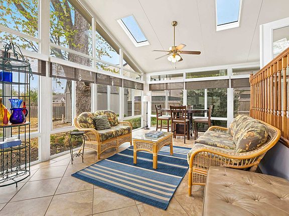 This recently renovated home with vintage decor features a large backyard with seating, a dining table, and a grill. The huge sunroom offers seating, a mini bar, a fireplace, and giant windows. The cozy living room includes a Smart TV, a sectional, and a fireplace, along with a desk and chair. The fully stocked kitchen and dining space are perfect for preparing meals. The three private bedrooms each have Queen-size beds.