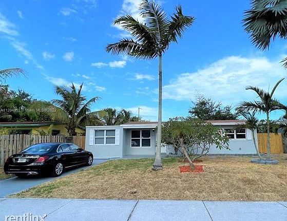 Gorgeous home updated and remodeled with large wide-open space, cathedral volume ceilings, kitchen with granite, white cabinetry, stainless appliances and more. Large bath lined with marble for a fabulous design. New grey tone tile floors. Freshly painted, move-in condition. Professionally landscaped. The best impact windows. Extra large patio and huge fenced backyard. Close to schools, shopping, WALMART, movies, 2-mi to downtown Ft Lauderdale, 4-mi to beach. The house with the red door and a covered front porch.