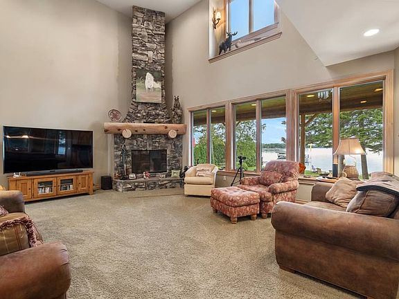 Mullett Lake is one of northern Michigan's premiere inland lakes that is connected to the world-famous Inland Waterway. Boasting 3,152 SqFt of living space, this 5 bedroom and 2 ½ bathroom home is ready for guests, family, and entertaining comfortably. 100' of sandy, Mullett Lake frontage is ready for new memories to be made! The custom made pecan wood cabinets are the focus point in this chef's gourmet kitchen with top of the line stainless steel appliances. The open floor plan creates a welcoming flow through the home with plenty of space between rooms, and lake views in abundance. The living room fireplace will take your breath away with hand laid stonework floor to ceiling and a beautifully scribed log mantel. Also, the main fireplace is both gas and wood burning. The gas fireplace in the master suite is a two-way fireplace that can be enjoyed in both the bedroom and bathroom, simultaneously. Enjoy peace, privacy, and life on water with a tall row of arborvitae to the south and a private stream to the north. This home is equipped with a whole house Generac generator that is directly hooked up to natural gas. Do you have toys that need storage? The attached garage to the home has 4 electric garage doors, one of them being a drive-thru bay! Need more storage? This home comes with a 40x60 pole barn property just down the road. Offered mostly furnished. Schedule your personal showing today!