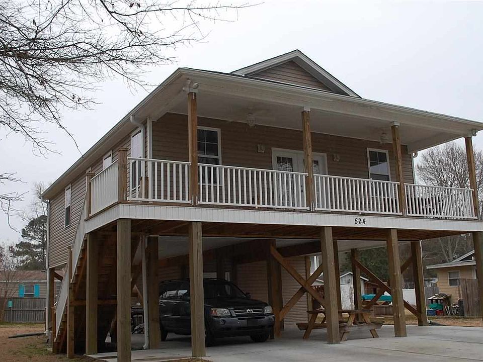 Tired of having your friends talk about their beach house? Now is your chance to join them! Home is only 2.5 years old and Less than 5 blocks to the beach access! Great 3 BR-2Bth raised beach house with open floor plan and huge 70'wide lot! No restrictions so plenty of room to store beach toys...boat or jet ski! Expansive 8 x 30 covered porch, outside storage and built in storage room underneath with double door entry wide enough for golf cart.