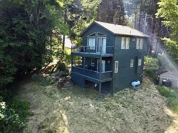 Welcome to this charming 2-story home featuring a unique blend of rustic elegance and thoughtful design. Upon entering, you are greeted with Italian tile floors and custom wainscoting and Pine accents that adorn the home throughout. Downstairs, there is a cozy office with built-in seating and storage, a bedroom with two built-in twin sized beds, also complete with storage underneath, and a shared bathroom. The primary bedroom offers a private deck and an en suite bathroom, featuring a luxurious 7-foot Jacuzzi tub. As you make your way upstairs, you will find the bright and open living area, half bath, and kitchen that boasts granite countertops. Situated on .249 acres, this property is perched above a forested canyon with a treetop ocean view of Black Sands Beach. This stunning home is nestled on a serene, quiet street with minimal traffic, offering a peaceful environment where the soothing sounds of rustling waves can be heard with exceptional clarity.