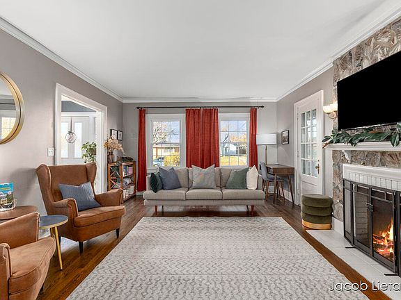 Located in highly sought after Riverside Gardens this beautiful 3 bed, 2.5 bath home is steps to Riverside Park, Kingma's Market & Northpoint Christian! This home features an open concept kitchen & dinning room w/ hardwood kitchen cabinetry, tile back splash & stainless steel appliances. Refinished hardwood floors cover most of the home, the living room features a fireplace & original french doors lead out to a huge screened in porch. Upstairs you will find a large main suite w/ remodeled bath featuring a walk-in shower, dual vanity w/ marble top & his/hers walk-in closets! Two generously sized bedrooms w/ full bath & charming build in finish the second floor. Don't miss the basements large rec room, wet bar & ample storage. Outside the large private back yard is fenced & has a two car garage w/ cement patio or third parking space. Updates include complete main-bath remodel 2023, light fixtures & attic insulation 2021, HVAC & humidifier 2019, roof, replacement windows & dishwasher 2015. Schedule your private showing today! Offers due by 3PM, Tuesday, Nov. 21st.