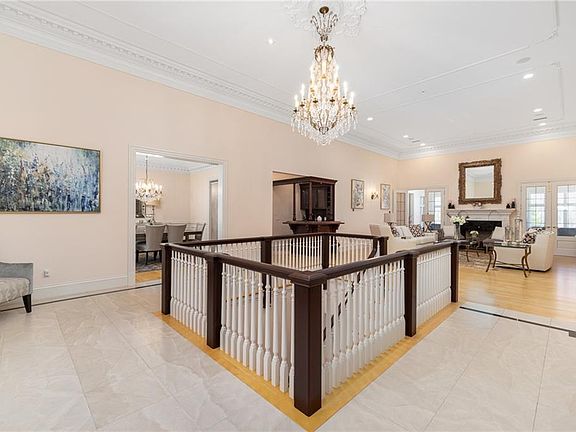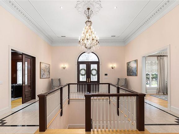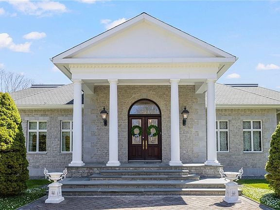 Discover the epitome of luxury living in this exquisite fully furnished grand executive estate set on over 7 acres in East Greenwich. Beyond your private gate, sophistication meets innovation in this tech-savvy automated home where security seamlessly intertwines with style. Enter the grand foyer through Mahogany French doors and marvel at the high ceilings, intricate crown moldings, chandeliers, granite fireplace & custom wet bar of your 20x26 Great room. Home features a cherry library with built-in desk & bookcases, a stunning formal Dining Room with decorative ceiling, wainscotting & chandelier, a massive sun filled gourmet Chef's kitchen with 2 islands, Sub-Zero & Thermador appliances, a built-in butler's pantry, China cabinet, desk & fireplace, doors open to blue stone patio. Your first floor Master Suite has a balcony, 2 custom walk-in closets, granite bath with whirlpool, double vanities and large walk-in shower. A sunroom w/balcony, 2 half baths and laundry room complete the first floor. You will be amazed by the fully finished walkout lower level featuring a theater/media room with seating & fireplace, a home gym, massaging chairs, spa quality sauna, billiard room with pool table, fireplace & custom wet bar, wine cellar and three spacious ensuites. This property is an Entertainers dream home. This fully automated home has it all, Hunter Douglas automated blinds, 7 heat zones with bottled gas, a 4-car garage with Tesla charger, sprinklers and more complete this gem.