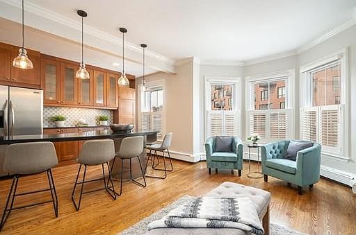 Wonderful upper level 2 bedroom/2 bath in the heart of the South End features open layout offering living room with fireplace, bay window and views. Gleaming chef's kitchen with granite counters, gorgeous cabinetry, top-of-the-line stainless steel appliances and convenient dining island. Hardwood floors and lovely custom built-ins throughout. Two ample bedrooms with generous closet space. Step downstairs to all the South End's best restaurants and shops.