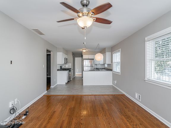 This stunning brick 1 story home was renovated to blend modern living into a relevant home for owners seeking new amenities! The home is nestled in an excellent location, walking distance to Warwick Park and mins to either Shelbyville Rd or Westport Rd and the Watterson Expressway. The floor plan was reimagined with an open concept embracing modern day living with the great room, dining area & kitchen all flowing together! The great room and dining area have opulent hardwood floors. The renovated kitchen has pristine white cabinetry, granite countertops, stainless steel appliances (including the refrigerator, gas range/oven, microwave and refrigerator) and tile flooring. All bedrooms have hardwood flooring and a split bedroom layout with the guest bedrooms to the front of the house and the primary bedroom to the rear. The primary bedroom features gorgeous vaulted ceilings and a spacious walk-in closet. The full bath has tile flooring and is complimented with a modern vanity. The laundry and utility room has a sliding barn door for privacy. The home has a perfectly executed outdoor entertaining plan with a front porch and rear deck overlooking the fenced backyard. The carport is equipped with cover parking. Other updates to the home include a new electric panel in 2019, HVAC in 2015, water heater in2015, vinyl double pane windows, vinyl wrapped trim and dimensional shingle roof.