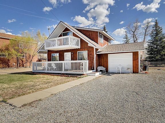Rare opportunity in prime Salida location! This charming 3-bedroom, 2-bathroom home, built in 1980, sits on a multi-lot property. Front porch with white wood railing offers privacy while enjoying the fresh mountain air. Exquisite craftmanship with floor-to-ceiling brick hearth houses a propane heater for warmth in the winter, as well as electric radiant floor heating throughout the home. Step onto the second level balcony to take in the picturesque Rocky Mountain views. Converted garage is currently in use as an additional bedroom, with French doors opening up to the patio. Half bathroom on main level also serves as laundry room with washer/dryer. Spacious backyard has endless possibilities - with mature trees for shade and privacy, concrete patio for outdoor entertaining, and three sheds for storage. Your cozy mountain escape awaits you!