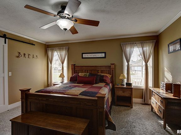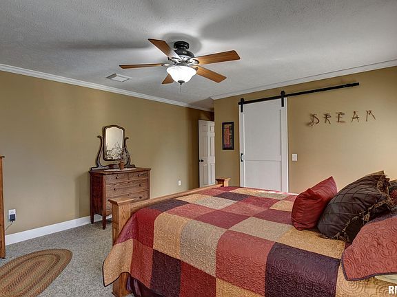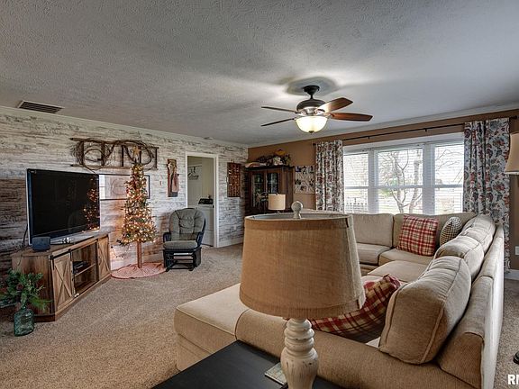 Stunning large ranch home that features 3 bedrooms and 2 full baths that sits on 3.5 acres.   Large living and family rooms.  Open kitchen with island.  2 car attached heated garage with bonus storage room.  2 good sized sheds.  Large screened in porch.  Back patio with brick fireplace great to entertain!