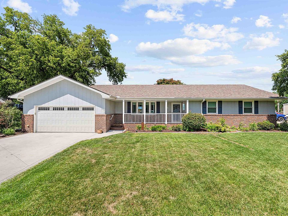 Beautifully maintained home! Enjoy one level living in Lindsborg. Generous living spaces with open floor plan and a great flow for family gatherings. Large living room with bay windows, new flooring, and large opening into the den, dining and kitchen. Den is cozy with a corner fireplace, sliding door to the back deck, and room for a dining table. Kitchen has great counter space and storage, hutch storage, and an added breakfast bar with more cabinet space. Mud room with ample storage and a cute pantry off of the laundry room. 2 car garage is oversized with room for shelving and freezers. New concrete driveway and sidewalks with a side patio, storage shed, and deck. Room for a garden and a well for watering. Enjoy the 24x24 building for hobbies, storage, home gym, you name it! You're going to love this one!