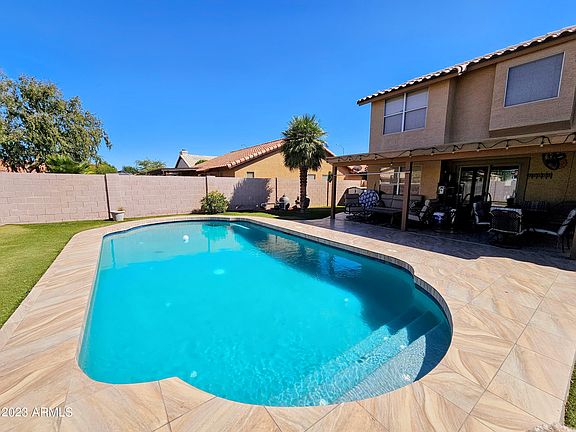 No HOA!! Beautiful backyard with newly (2023) refinished pebble-tec pool with new filter and pump. No grass makes for easy upkeep! Inside you will find an huge master bedroom and 3 more bedrooms. The great room is set up with projector and projector screen that will convey if desired! Stainless steel appliances and island in kitchen. New dishwasher in 2023.