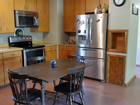 Nicely maintained 3 bedroom ranch home on double corner lot at the west edge of town. This home features eat in kitchen, spacious living room, 3 bedrooms and bath on main floor. Carpet, windows, garage doors & back door, water heater & water softener all new 2015. New roof 2011. 2 stall attached garage was insulated & drywall 2017. Full unfinished basement has high ceilings offers potential for living space, recreation or workshop. Also has Bilco door and steps to the beautiful, large backyard.