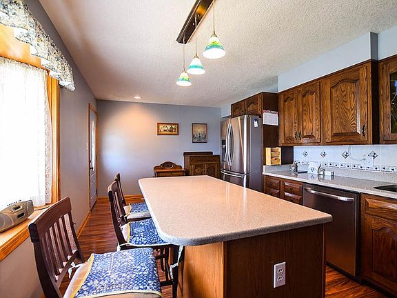 With a 1 acre lot this 4+ bedroom, 3.5 bath home has space galore!! You're welcomed by a front porch to relax and enjoy the great outdoors. Enter into a beautiful kitchen with quartz counter tops, stainless appliances and laminate flooring. From there you enter into a dining/living room combination with a woodburning FP, beautiful parquet flooring & then follow through the French doors into the spacious 4 season room which leads you through swinging patio doors onto a HUGE patio and backyard w/apple tree, large ash trees, shed and play area for the kids! Once back inside there are 2 bedrooms and 1.5 baths on main level. The basement is partially finished with rec room that features limestone FP, shower & 5th bedroom. In 2002 the upstairs was added to include a nice bonus room to relax & watch tv, a nice sized bedroom with its own bath and a LARGE master suite with hardwood, walk-in closet and an exceptional bath with ceramic tile, 2 sinks, corner shower and Jacuzzi tub. Furnace '02, roof '12, AC '16 All this within walking distance to MFHS and close to shopping and restaurants.