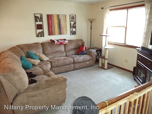 3 Bedroom, 1 1/2 bath House - This 3 bedroom, 1 1/2 bath house is located in Boalsburg. It is near a CATA bus stop. The upper level has 3 bedrooms, 1 bath, living room and large eat in kitchen with access to a back patio area. The lower level has a second finished space, laundry room with washer/dryer hook ups and 1/2 bath. There is a 2 car attached garage. Rent is $1195/month and tenants are responsible for all utilities. Heat source is electric. Available 8/5/16 (RLNE2296045)