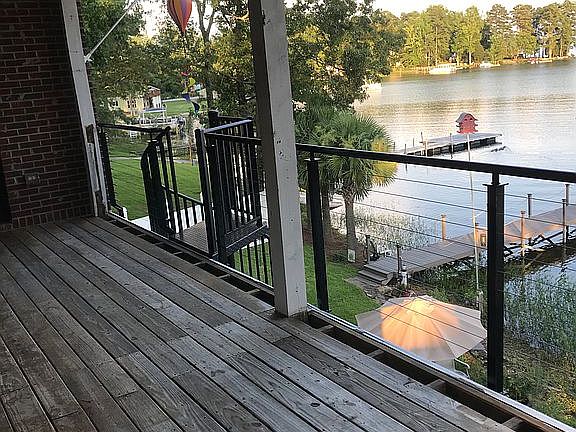 Upstairs has three bedrooms, two full bathrooms large living room,kitchen and separate dining room. Downstairs includes a three car garage, full kitchen. living, bath, and a large room for sleeping/exercising/game room. Both floors have views of the lake and patio doors to a large covered porch. Top floor has had the following updates: Every room as been painted all very muted shades. Small and master baths have been totally remodeled . In master it includes heat floors and a Kohler air bubble soaker tub. Both have a new sink, vanity, tile, mirror(s) and light(s). Kitchen has additional cabinets including a pantry with 3 large pull out drawers on top and four recycling tubs on bottom. Three feet was added to the island and all new countertops.
