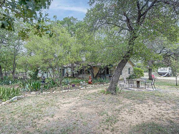 Secluded Birder's Paradise! Three unrestricted acres with a quaint 3/2 stone home. Mature trees hide the house from sight for major privacy. Various areas on the property to rest and just enjoy this Hill Country natural habitat. Home improvements include new HVAC and ducting in 2013, both toilets new in 2020, master tub new in 2020, well pressure tank new in 2021. The master bedroom/bath was added in 1996. Huge covered front porch has 304 sq. ft. with a hot tub mounted along the south end. The circle drive has rocks and rail fencing along most of it which lines out the interior "gardens" featuring a variety of native plants. Night light bulbs are hung in many places to provide subtle lighting after dark. There are trails all around the acreage for walks or 4 wheeler runs. About birds - hummingbirds nest in a tree near the back of the house, many painted buntings frequent the property along with cardinals, 2 kinds of woodpeckers and the ocassional hawk! Currently on private water well and septic. There is a storage building and an equipment shed. 3-sided shed along the north fenceline was a horse stall and feed storage area. It is country living and it is AWESOME!