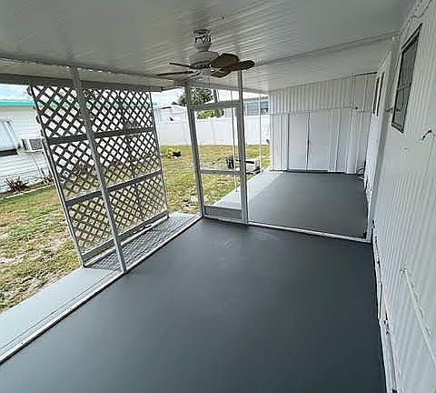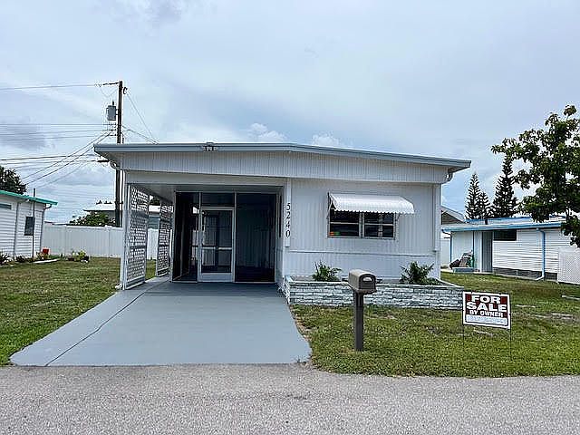 This newly remodeled home is move in ready and located in Casa Del Rey MHC in Bradenton, FL. The home has new subfloor, flooring, kitchen, bathroom, interior and exterior paint, exterior doors on the front and back, window AC units in kitchen and living room and bedroom. The kitchen has new cabinets, countertops and sink. The bathroom has new vanity, toilet and shower. The shower was converted from a tub/shower to a walk in shower to make it more accessible. All plumbing in the kitchen and bathroom has been replaced with new PVC and tied into the main lines. A few electrical repairs were completed in the living room where outlets were not functioning. When you pull in the driveway you walk into the screen porch located on the West side of the home which gets the breeze. There is also a large 10ft x 12ft shed behind the screened patio with washer and dryer hookups located inside along with extra storage. This home is clean and is like new with all the rehab that has just been completed. Casa Del Rey is a 55+ community and requires an application process to be approved for residency. If interested, please contact Haley for more information and to set up a showing.